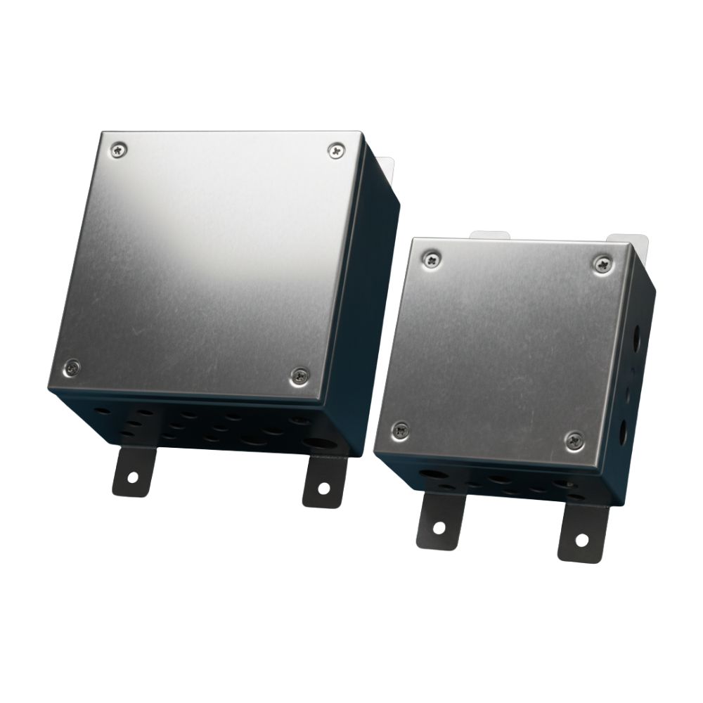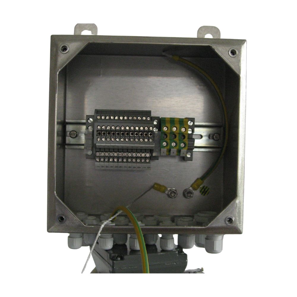 Edelstahlgehäuse in A4 Qualität. Standard Größe, oder Größen nach Bedarf. Mit Kabelverschraubung, DIN Schiene und Reihenklemmen.